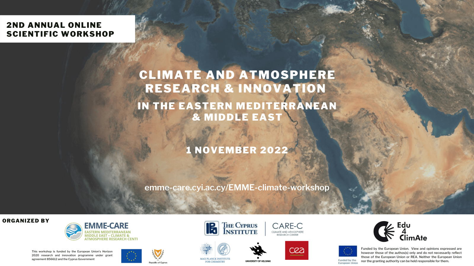 EMME-CARE is hosting the 2nd Annual Scientific Workshop on Climate and Atmosphere Research & Innovation in the Eastern Mediterranean and Middle East (EMME) region, on Tuesday, 1 November 2022.